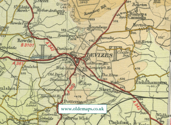 The map below shows the features of the town of Devizes, its streets and houses as