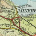 Minehead, situated about twenty five miles north west of Taunton on the Somerset coast, was once an important port, for both herring fishermen and for the shipping of wool, cattle and coal. With the silting of the harbour in the late eighteenth century, and the disappearance of the herring shoals, Minehead's importance as a port diminished. The town's fortunes took a turn for the better with the coming of the railway in the mid nineteenth century and Minehead, with its population of around 9000, now relies heavily on summer visitors, offering wide sandy beaches and mild climate. The map below shows the town of Minehead as it was in the mid twentieth century. Click on a selected area of the map below to see an enlargement.